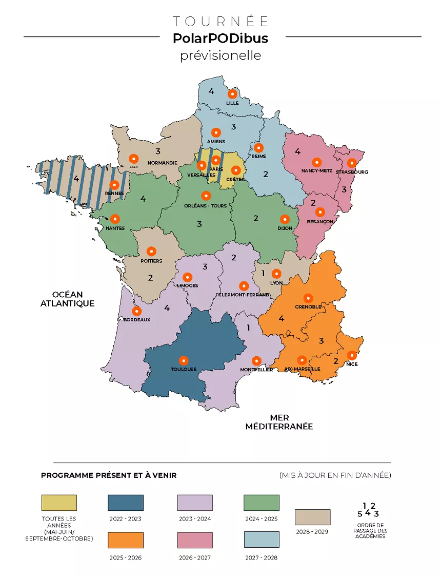 Le PolarPODibus assure une médiation scientifique itinérante autour de l’expédition océanographique Polar POD. Il promeut l’enseignement des sciences ainsi que la sensibilisation au développement durable. Par son contenu et sa volonté de toucher tous les territoires, il est une ode à la science pour tous, à l’égalité des chances et à l’engagement pour l’environnement.
