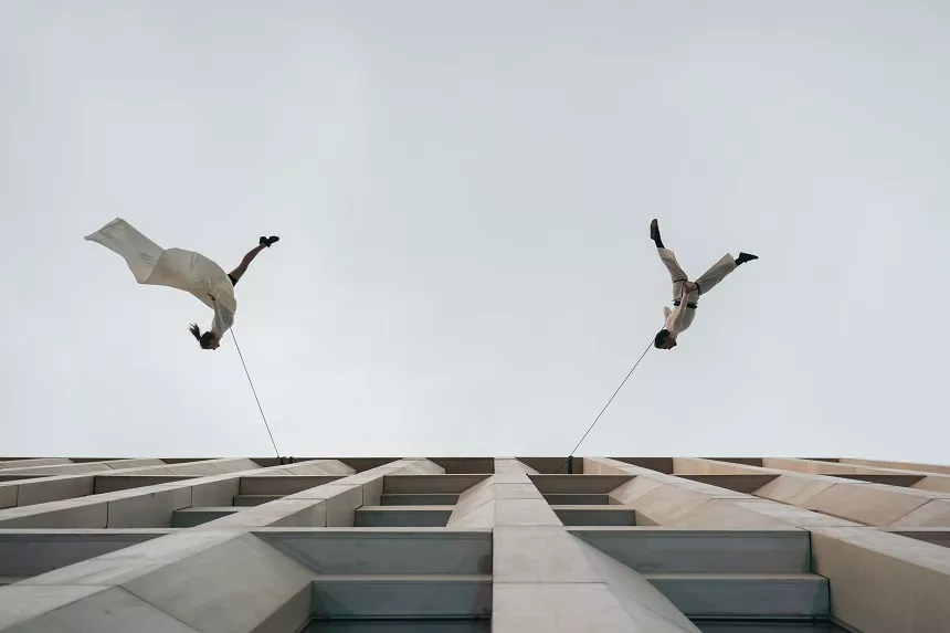 Spectacle de danse verticale, création in situ. Ballet Aérien poétique et sensationnel