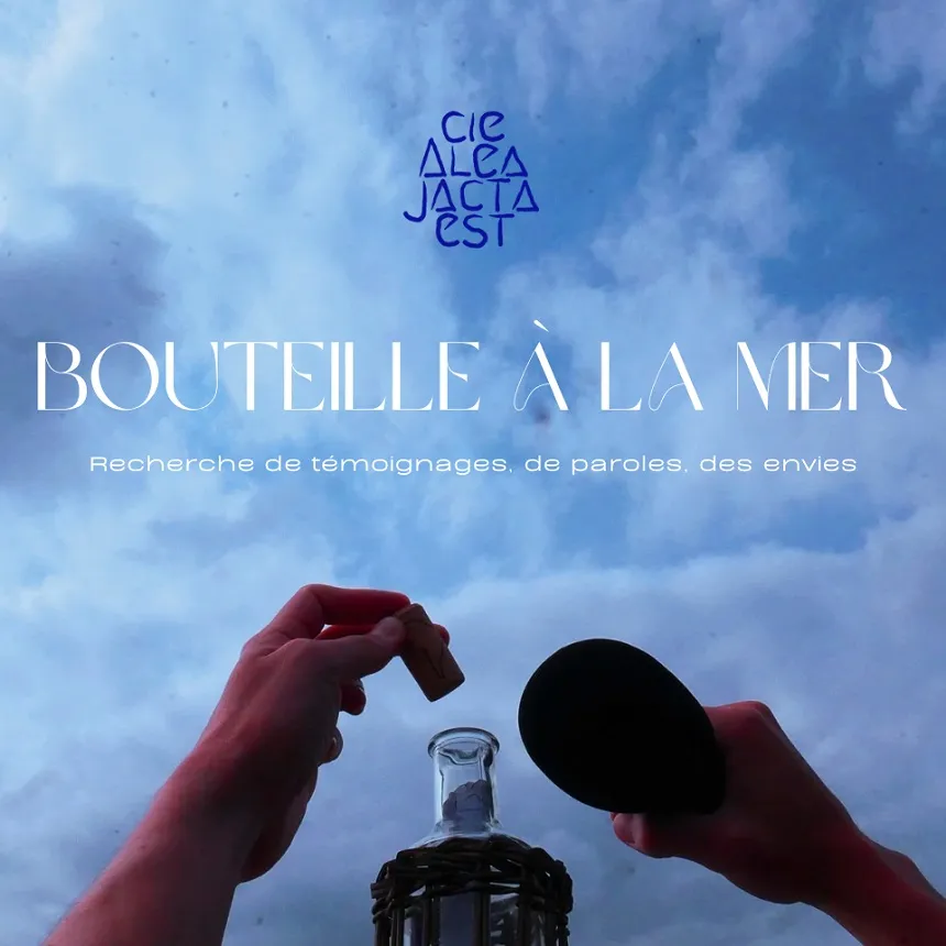 « Bouteille à la mer est une performance poétique et participative qui interroge le lien entre les humains à travers la mer, ses vagues, symbole du voyage, du hasard et du message.