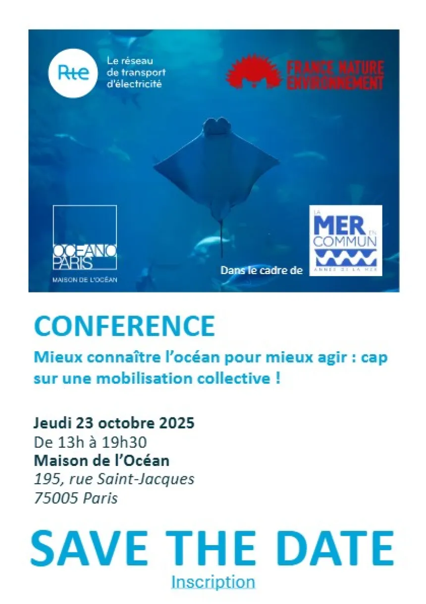 La protection des océans s’impose comme une priorité mondiale pour répondre aux défis environnementaux globaux de notre temps. Pour répondre à cette urgence, RTE et FNE organisent une conférence qui réunira scientifiques, professionnels de la mer, associations et citoyens engagés autour d’une question : comment mieux comprendre l’environnement marin pour inciter à l’action ?
