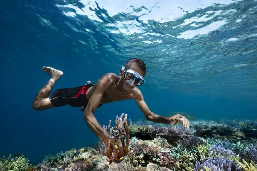Le photographe Martin Colognoli, biologiste marin, a rapporté des images magnifiques des îles d’Hatamin et Seraya à côté de Florès en Indonésie. On y découvre comment des pêcheurs traditionnels protègent et restaurent l’écosystème marin dont ils dépendent pour vivre. Cet endroit est riche en biodiversité marine avec 76% des espèces de coraux mondiaux et 56% des espèces de poissons de récifs. Venez comprendre les coraux, leur fragilité face au changement climatique et à la pollution humaine mais aussi leur capacité de résilience.