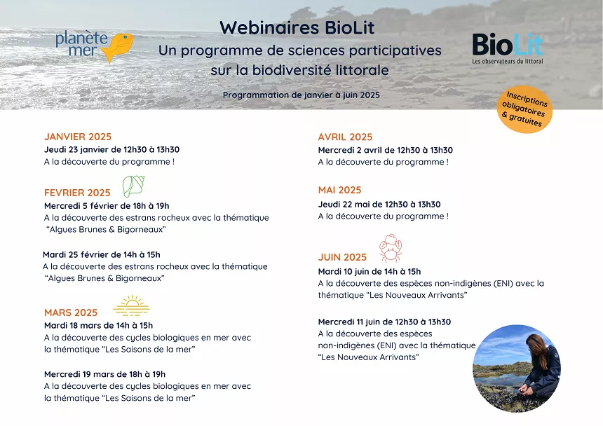 Cycle de webinaires pour découvrir le programme BioLit À la découverte des cycles biologiques en mer avec la thématique “Les Saisons de la mer”