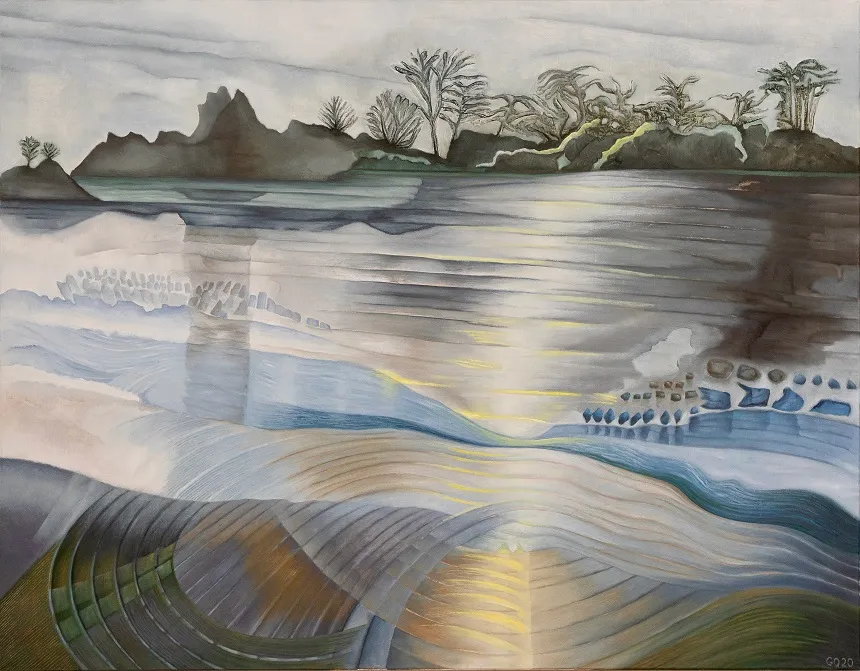 Guillaine Querrien présente, à travers ses oeuvres, une contemplation intime du paysage marin qu'elle côtoie depuis toujours.