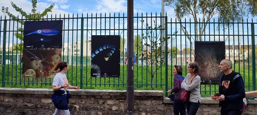 De septembre à novembre 2025, sur les grilles de 5 squares de Paris 18, Léo Mare plongée expose les photos grand format prises par ses adhérents.