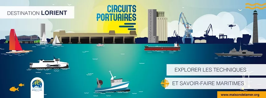 Visites pour explorer les techniques et savoir-faire maritimes de la rade de Lorient : La marée du jour, le port de pêche de Keroman ; La rade au 3 000 navires ; Secrets de navires, l’aire de réparation navale de Keroman ; Au coeur des docks, le port de commerce de Lorient ; Objectif Pêche durable, la station Ifremer de Lorient ; Du poisson à la molécule, le centre technique IDMer.