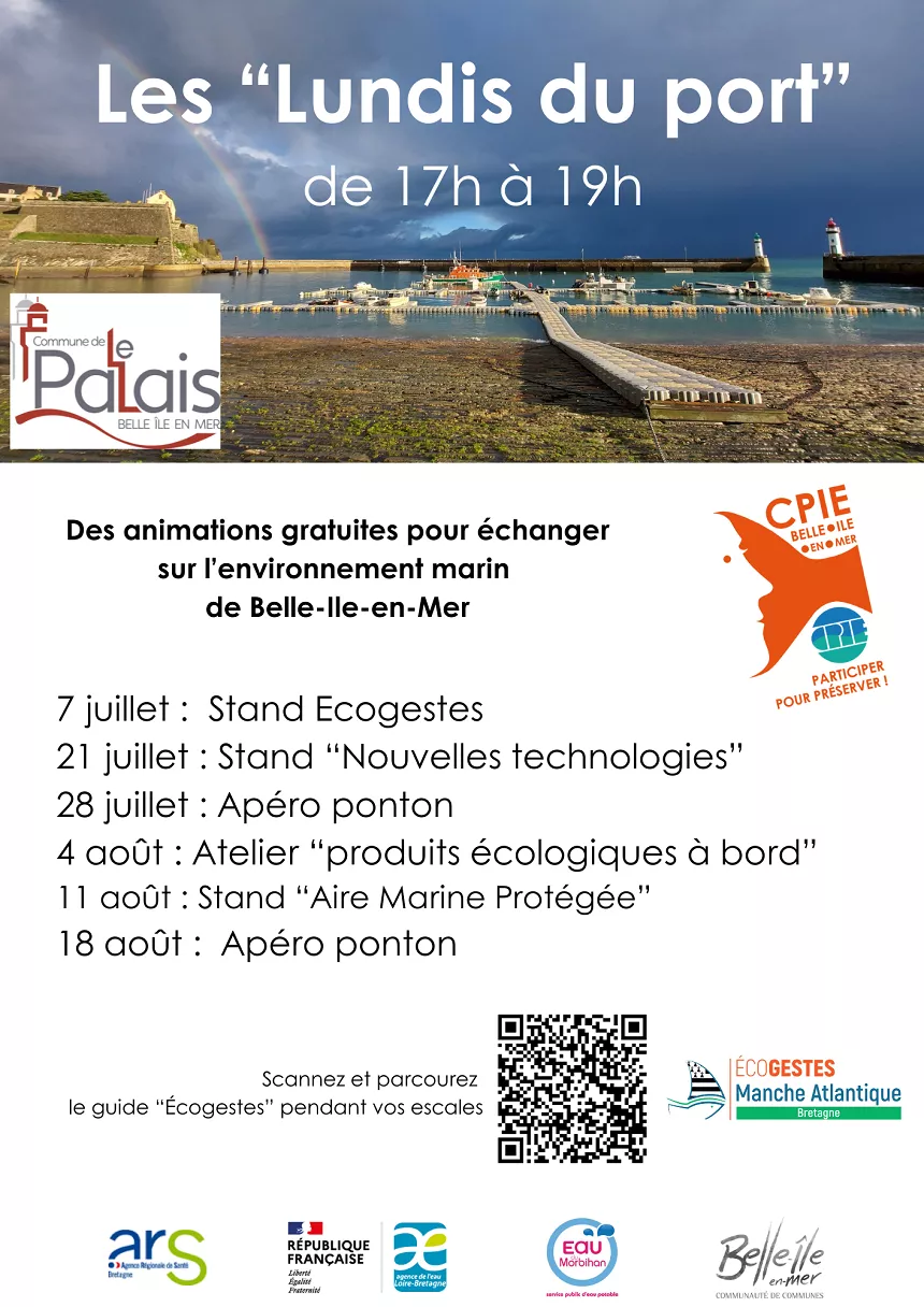 Entre juillet et août, chaque lundi, l'équipe du CPIE organisera et animera des stands de sensibilisation avec des entrées thématiques variées : Aire Marine Protégée, nouvelles technologies, produits d'entretien écologiques, écogestes à bord, ...
