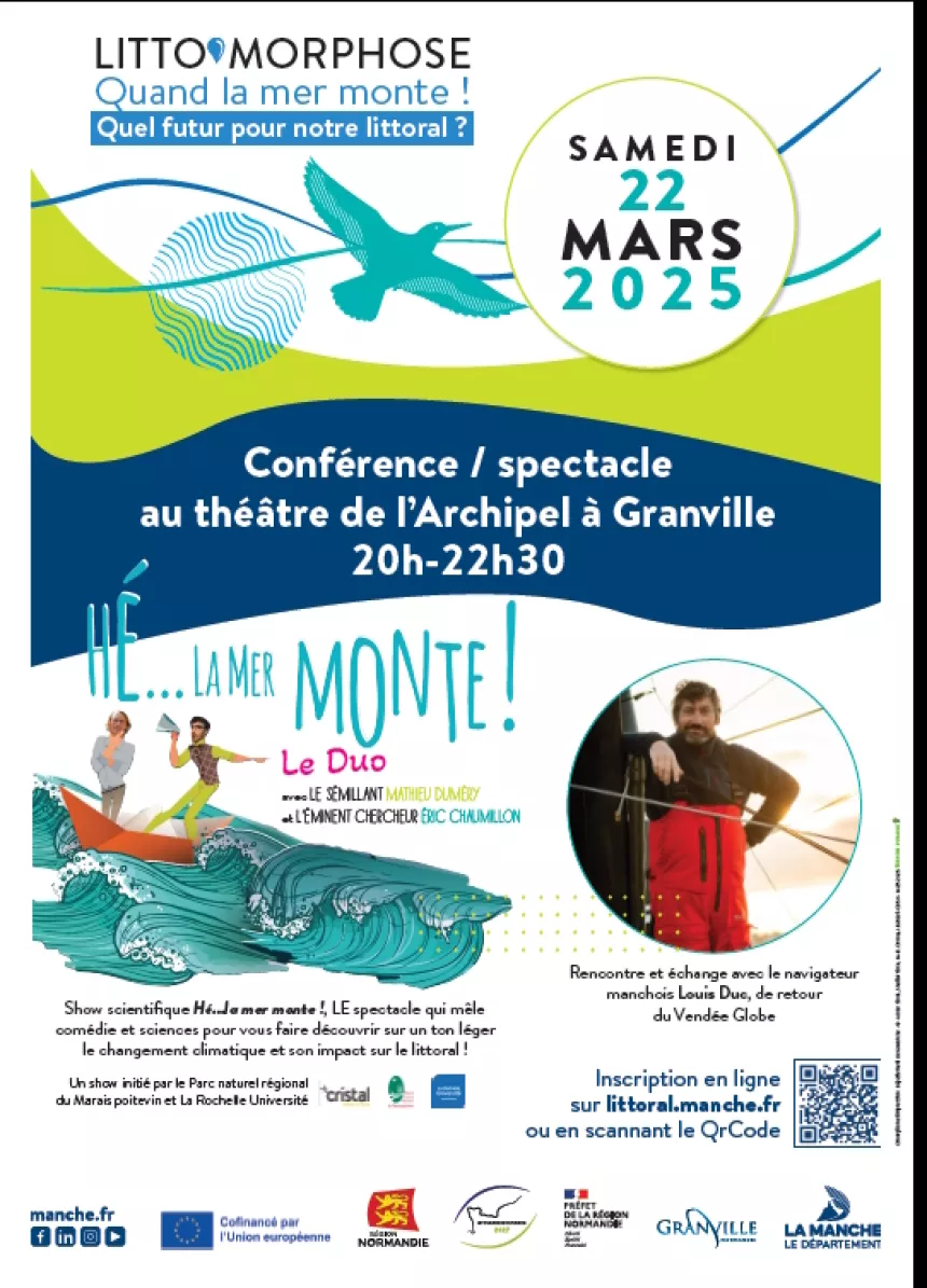 Dans ce cadre, l'évènement « Litto’Morphose – Quand la mer monte ! Quel avenir pour notre littoral ? » est organisé du 21 au 23 mars 2025, en partenariat avec la ville de Granville.