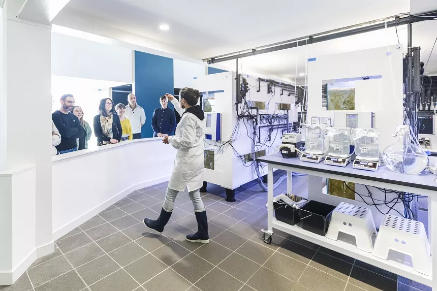 Véritable laboratoire de recherche ouvert au public à Océanopolis, Océanolab accueille chaque année des scientifiques réunis autour d’un projet. Ils quittent leurs laboratoires pour partager en direct avec le public leurs travaux, leurs métiers et les expériences. En 2025, les chercheurs en résidence à Océanolab étudient le plancton, surtout les « blooms » de phytoplancton !