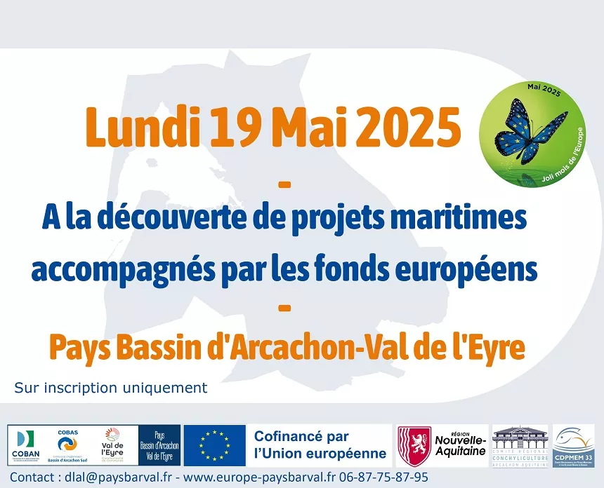 Dans le cadre du Joli Mois de l’Europe, le Pays Bassin d’Arcachon-Val de l’Eyre organise un parcours pédestre pour découvrir des projets maritimes, soutenus par des fonds européens. L’occasion de sensibiliser aux métiers de la pêche et de l’ostréiculture, au milieu marin et aux projets scientifiques liés au changement climatique.