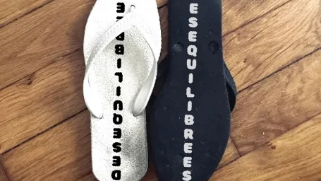 Les paddlers de WATERTREK ont ramassé de nombreuses chaussures orphelines au cours de leurs expéditions: comment ce déchet est-il arrivé dans l’eau ? Notre monde marche-t-il à cloche-pied, submergé de trop de déchets, perdant pied au point de ne plus savoir se mouvoir ? Sommes-nous symboliquement amputés d’une partie de nous-mêmes : celle qui nous relie au vivant, à notre nature - sensible et sensorielle - indispensable à notre bonne marche et équilibre ? C’est un véritable questionnement relatif à nos modes de vie, notre rapport aux déchets et à la consommation, notre contact au sol et la terre, nos liens au vivant, dont nous sommes parties intégrantes, qui est proposé ici.