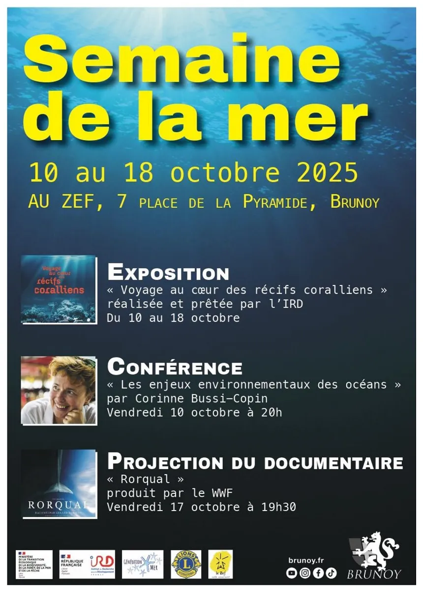Du vendredi 10 octobre au samedi 18 octobre 2025, un événement intitulé "Semaine de la mer" est organisé par le Lions Club de Brunoy en partenariat avec la Commune de Brunoy et le Café associatif, le ZEF (lieu où se déroulera l'événement) afin de sensibiliser les habitants et le jeune public à l'importance de la mer et des océans pour la planète.